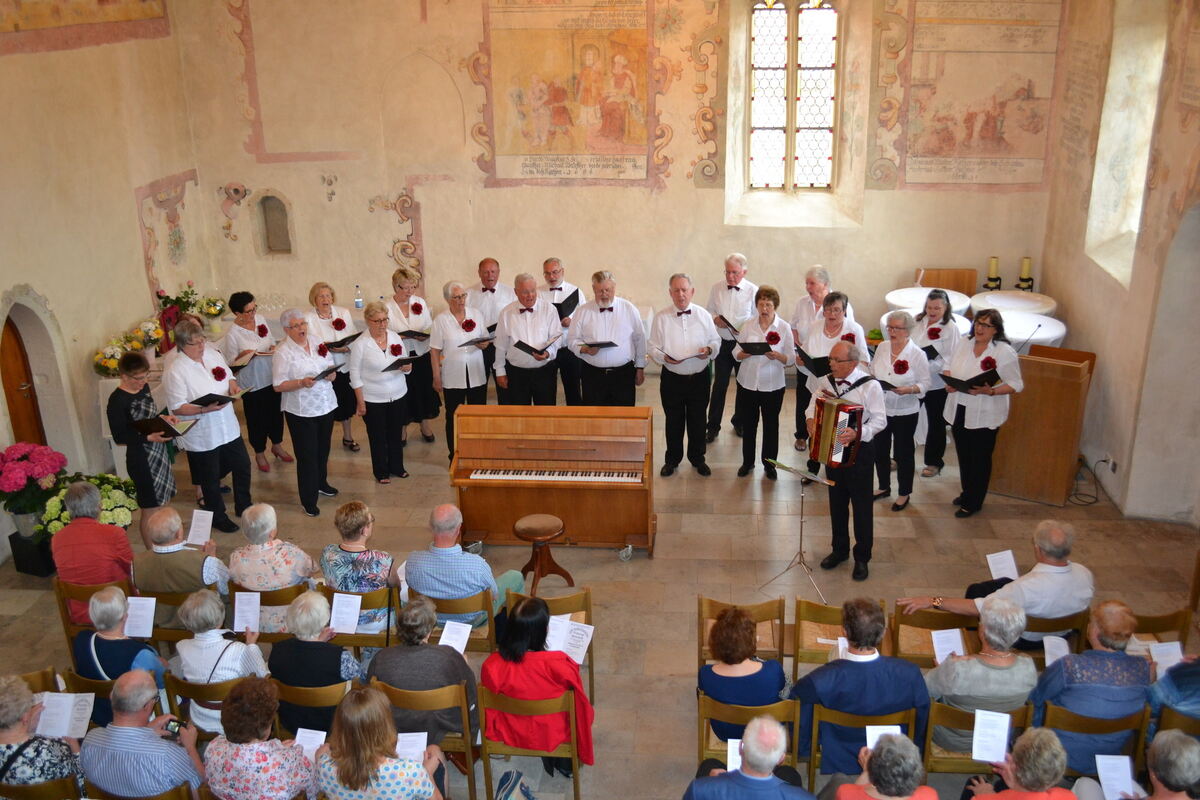 Der erste Höhepunkt folgte prompt: »Seemann, deine Heimat ist das Meer«. Denn beim allseits bekannten Stück wurde der mit lediglich vierzehn Frauen und sieben Männern recht dünn besetzte und von Olga Haas geleitete Chor vom Publikum bemerkenswert stimmgewaltig unterstützt. Zudem lief Eugen Markucik zur Höchstform auf.